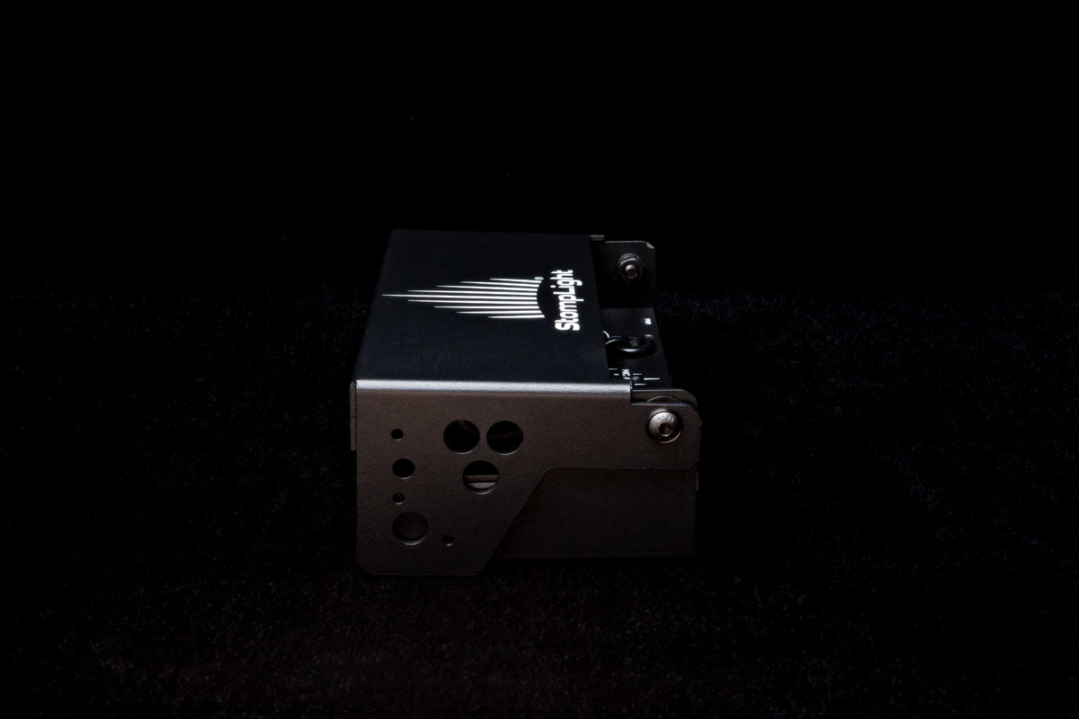 The StompLight® Pro Stage Lighting Effect Pedal features a patented LED lighting array mounted to an analog controlled effect pedal engineered to provide powerful stage lighting with effects. Each pedal provides a 10’ deep and 10’ wide area of coverage.